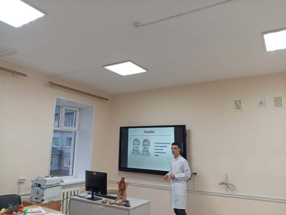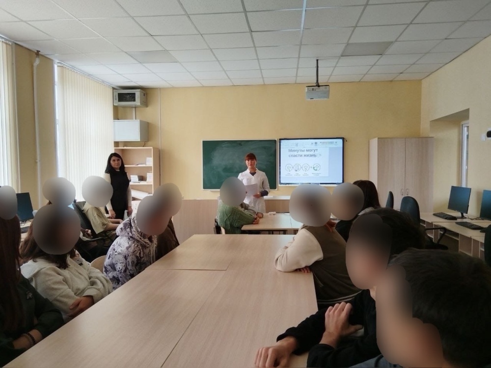 - Для студентов БССК фельдшером Гильвановой Ириной Фаритовной была проведена познавательная беседа на тему «Минуты могут спасти жизнь», подчёркивающая важность своевременной помощи при инсульте.