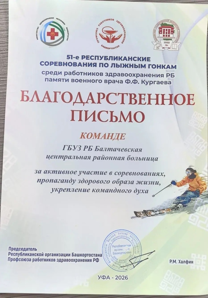 За активное участие, пропаганду здорового образа жизни и укрепление командного духа коллектив Балтачевской ЦРБ был награждён благодарственным письмом. Такие события не только способствуют развитию спорта среди медицинских работников, но и укрепляют взаимопонимание и единство в профессиональном сообществе.