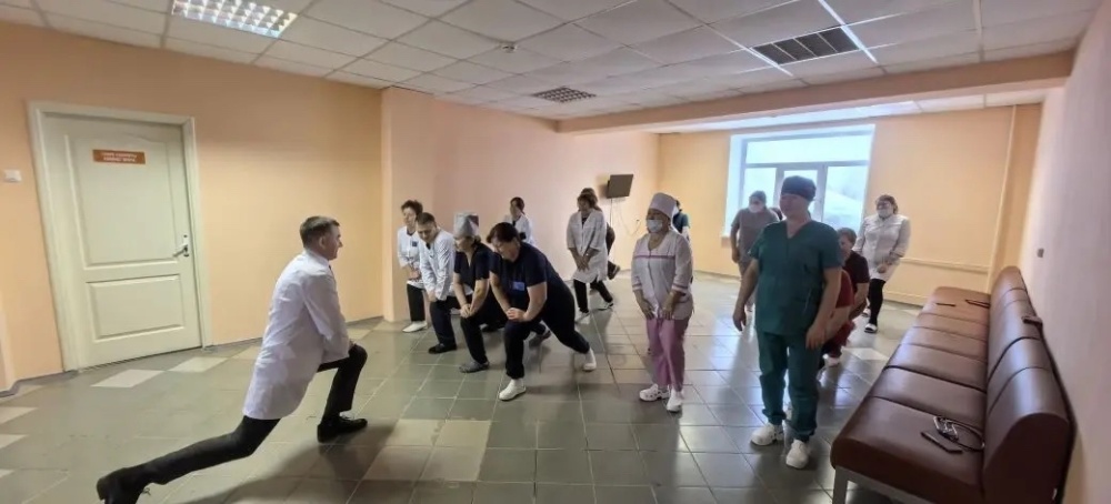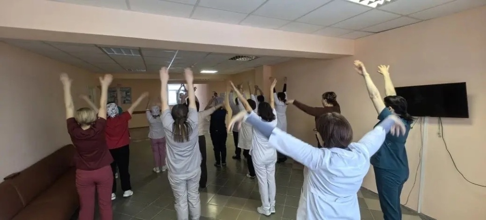 «Зарядись!» — это инициатива по повышению физической активности медицинского персонала прямо в стенах больницы. Краткие перерывы на разминку помогают врачам и медицинским сёстрам сохранять энергию и концентрацию в течение напряжённого рабочего дня.