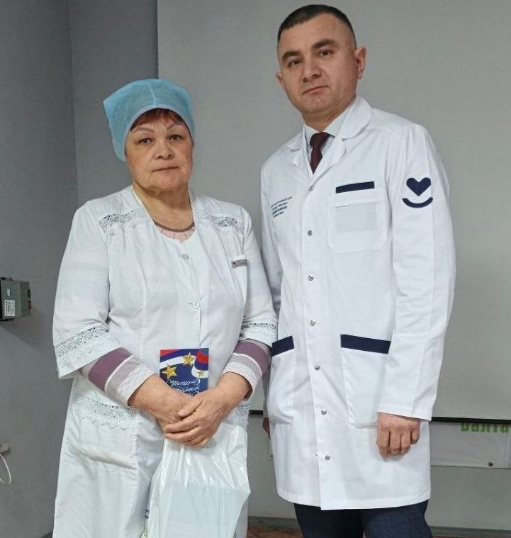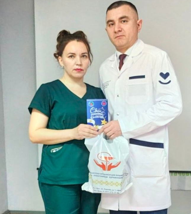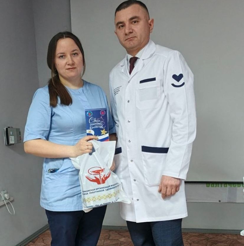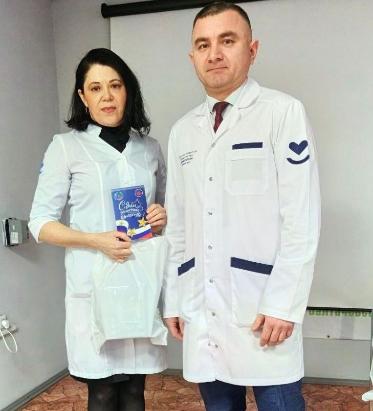 Главный врач Салават Фаатович вручил поздравительные открытки от министра здравоохранения Республики Башкортостан Айрата Рахматуллина и председателя профсоюза медицинских работников Рауля Халфина тем сотрудникам, чьи мужья или сыновья сегодня защищают нашу Родину в зоне СВО