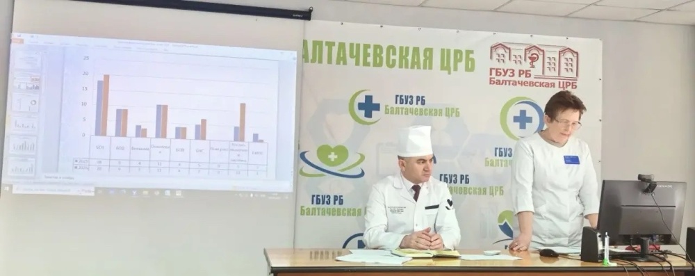 Заместитель главного врача по медицинской части Хабипова Р.Р. выступила с детальным анализом, акцентировав внимание на мерах по снижению смертности. Участковые терапевты, проанализировали свою работу на участках за 1 квартал, а также представили доклад с анализом смертности за март 2026 года и оценкой запущенности случаев злокачественных новообразований (ЗНО).