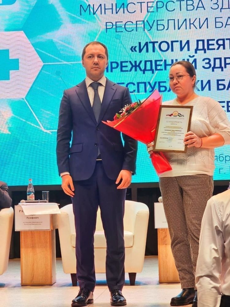 Также на заседании было вручено благодарственное письмо фельдшеру Балтачевской ЦРБ Апканиевой Л.А. от исполняющего обязанности министра здравоохранения Республики Башкортостан Рахматуллина А. Р. за высокое профессиональное мастерство, добросовестный труд и достигнутые успехи в труде.
