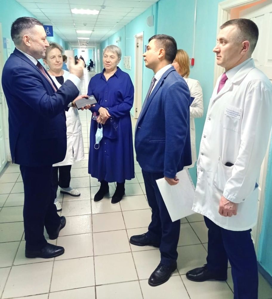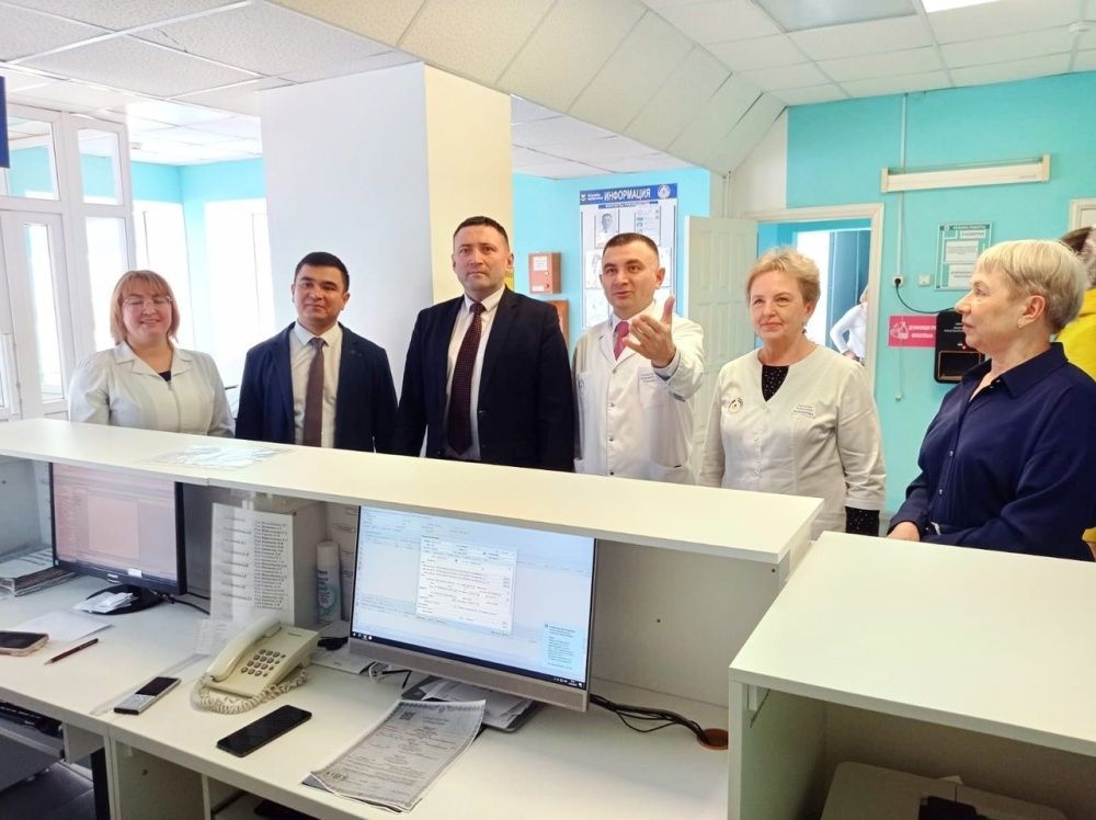 После итогового медицинского совета гостям был проведен обход по поликлинике, где они ознакомились с работой регистратуры, в которой был проведён ремонт и обновлена мебель, ознакомились с ремонтом поликлиники и навигационной системы. Посмотрели работу кабинета неотложной помощи.