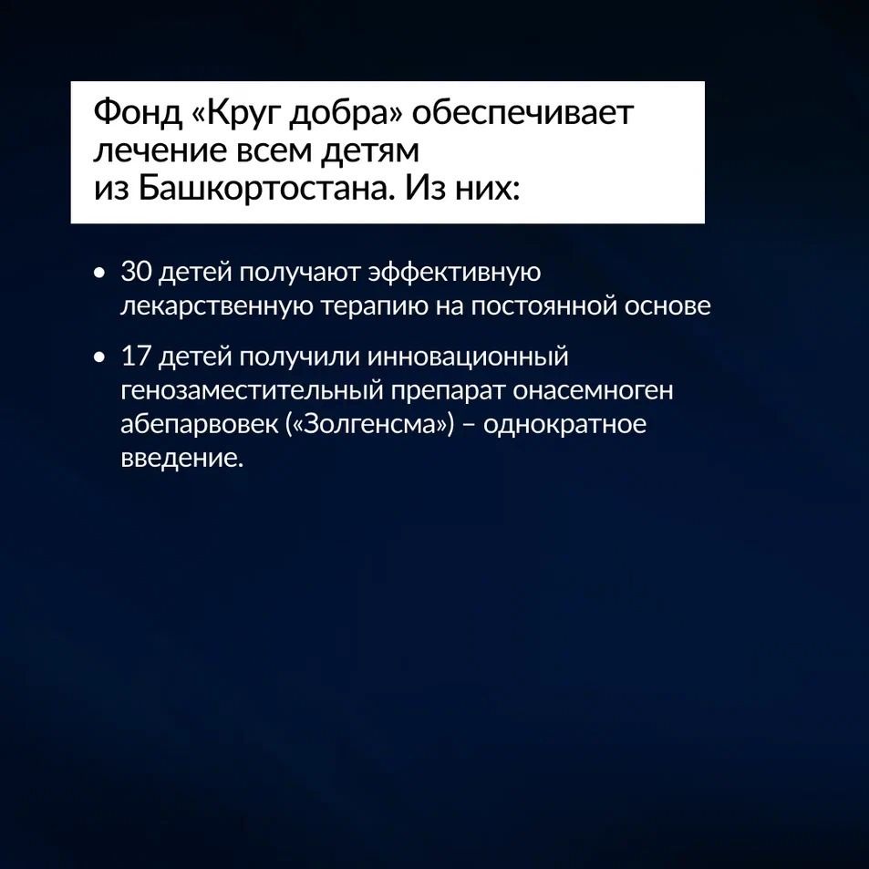 Благодаря фонду «Круг добра», который был создан в 2021 году по указу Президента России, всем детям с этим заболеванием в нашей стране по назначению врачей доступны препараты патогенетической терапии.