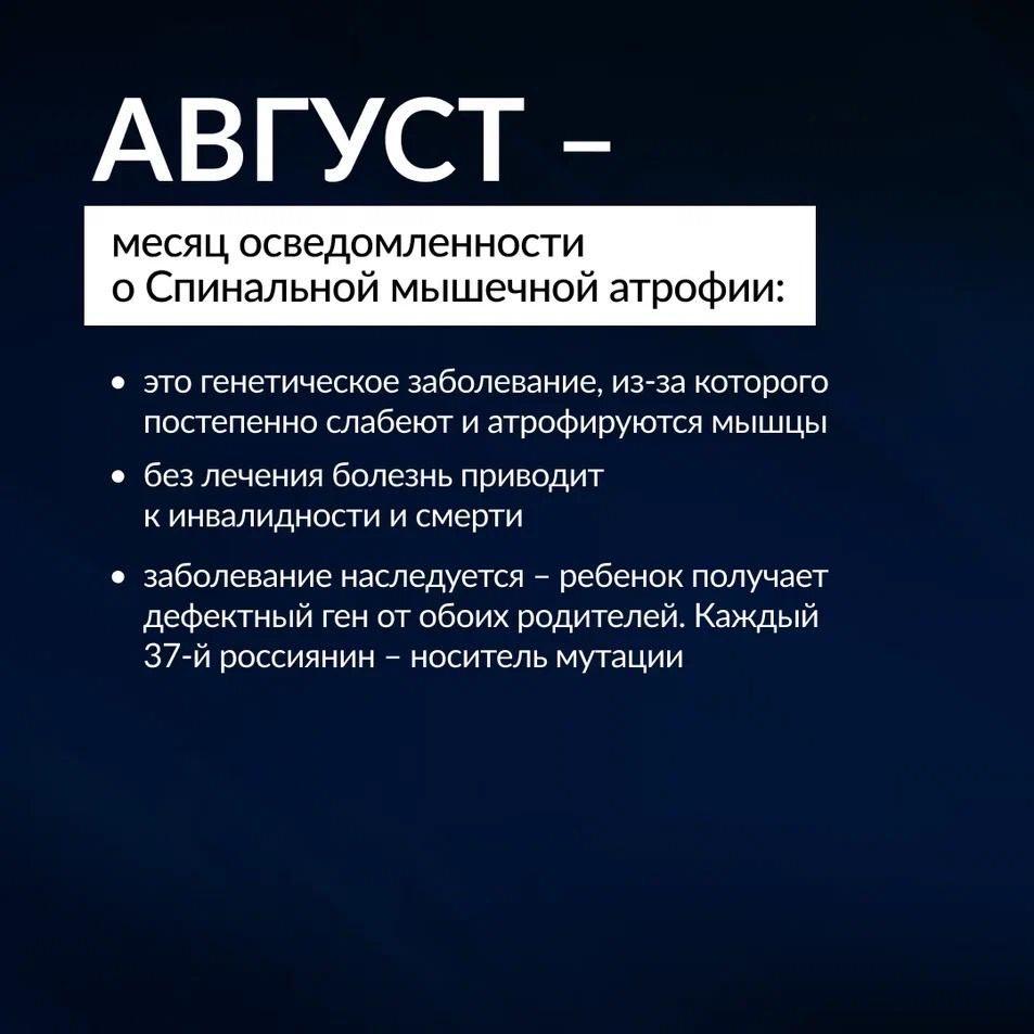Август — месяц осведомлённости о спинальной мышечной атрофии (СМА)